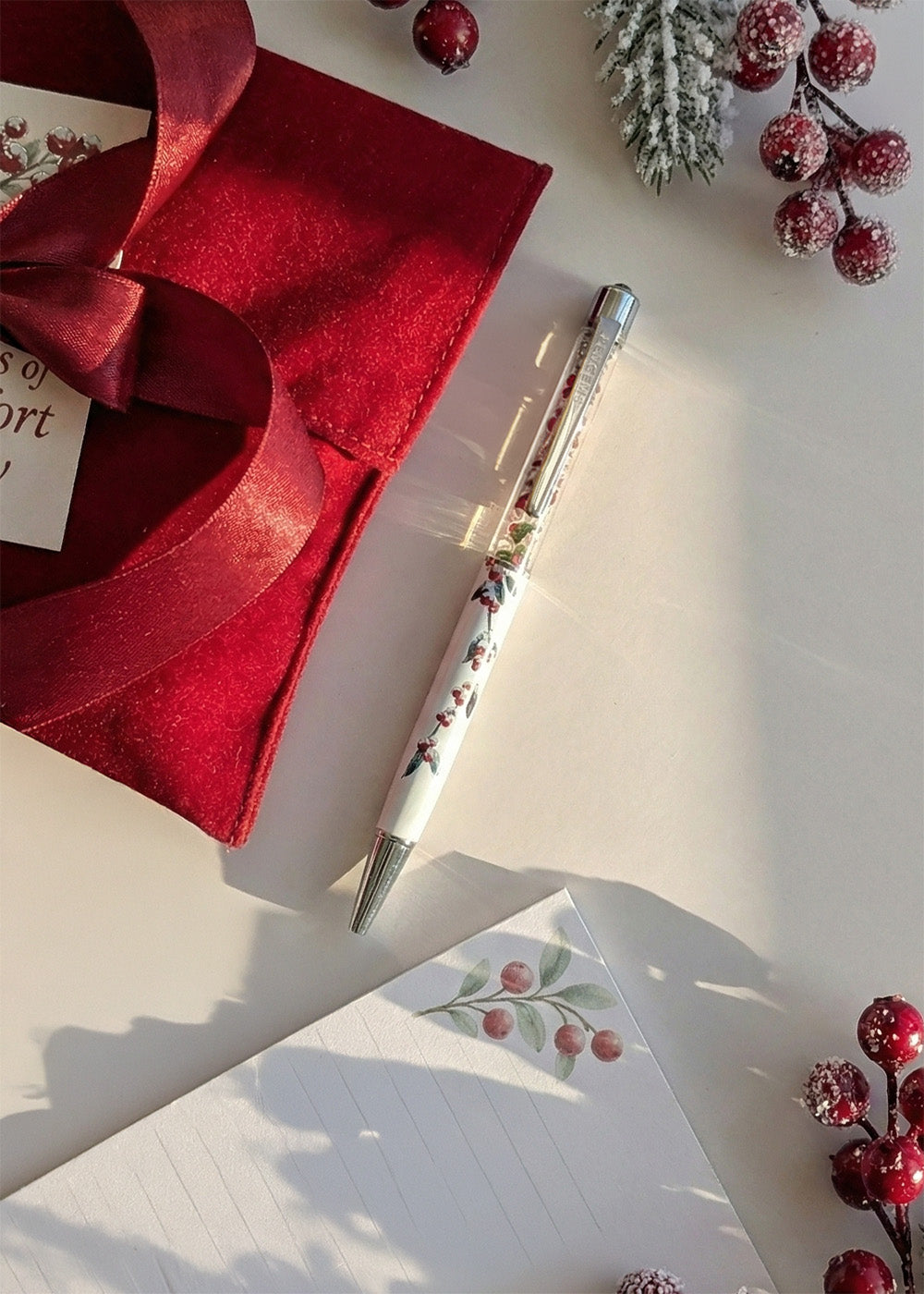 Capture the winter glow with Frosted Cranberry, a hand-painted crystal pen nestled in a complete luxury gift set.