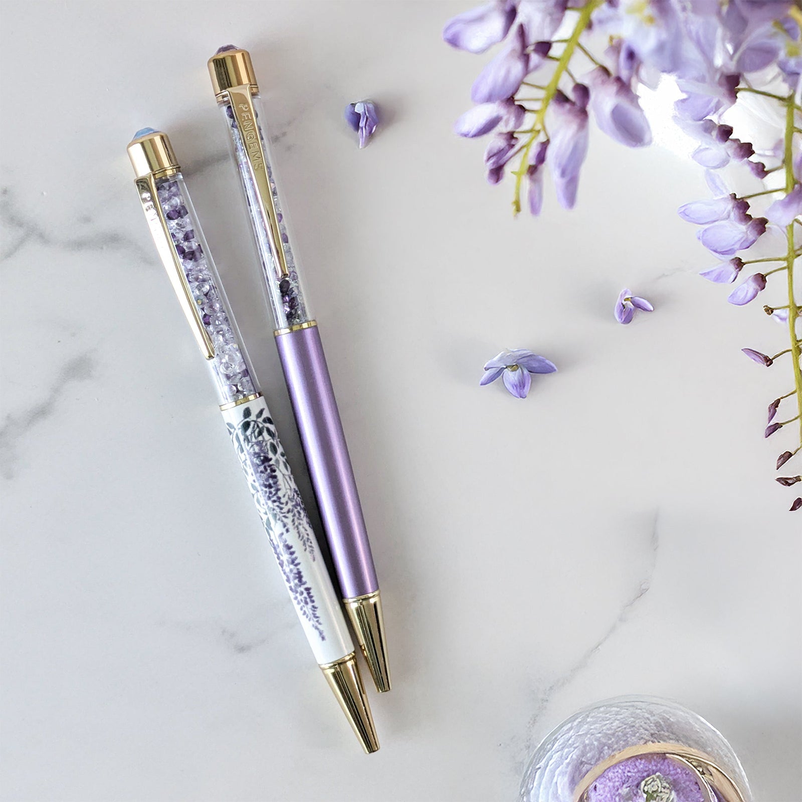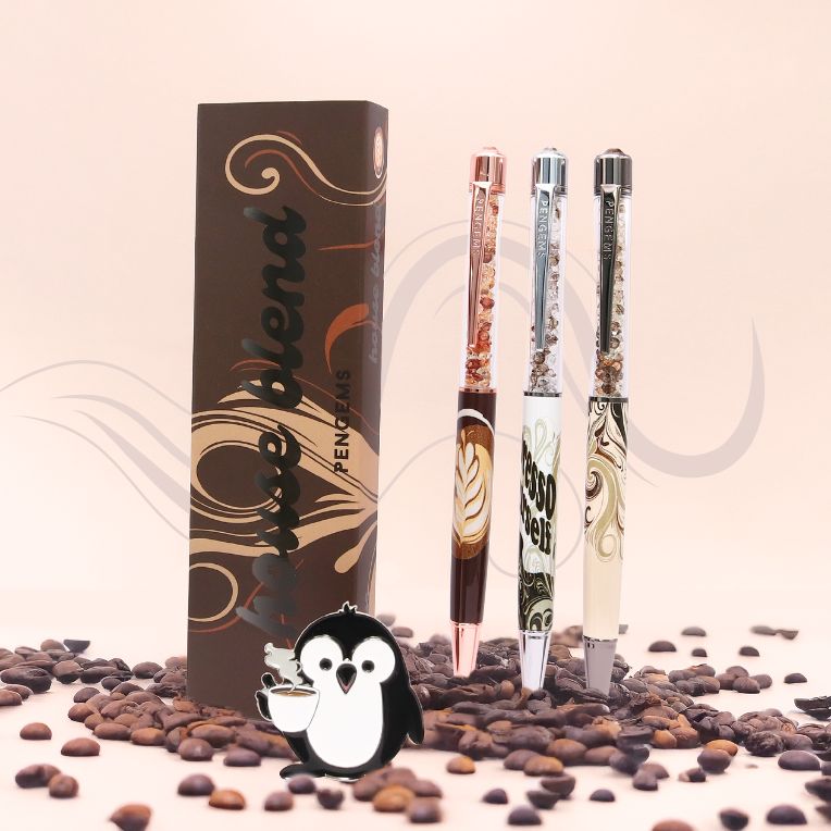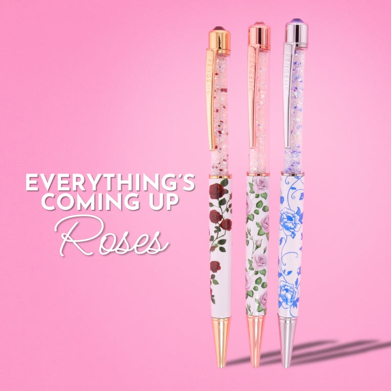 Three crystal pens blooming with drama, charm, and just a hint of scandal.