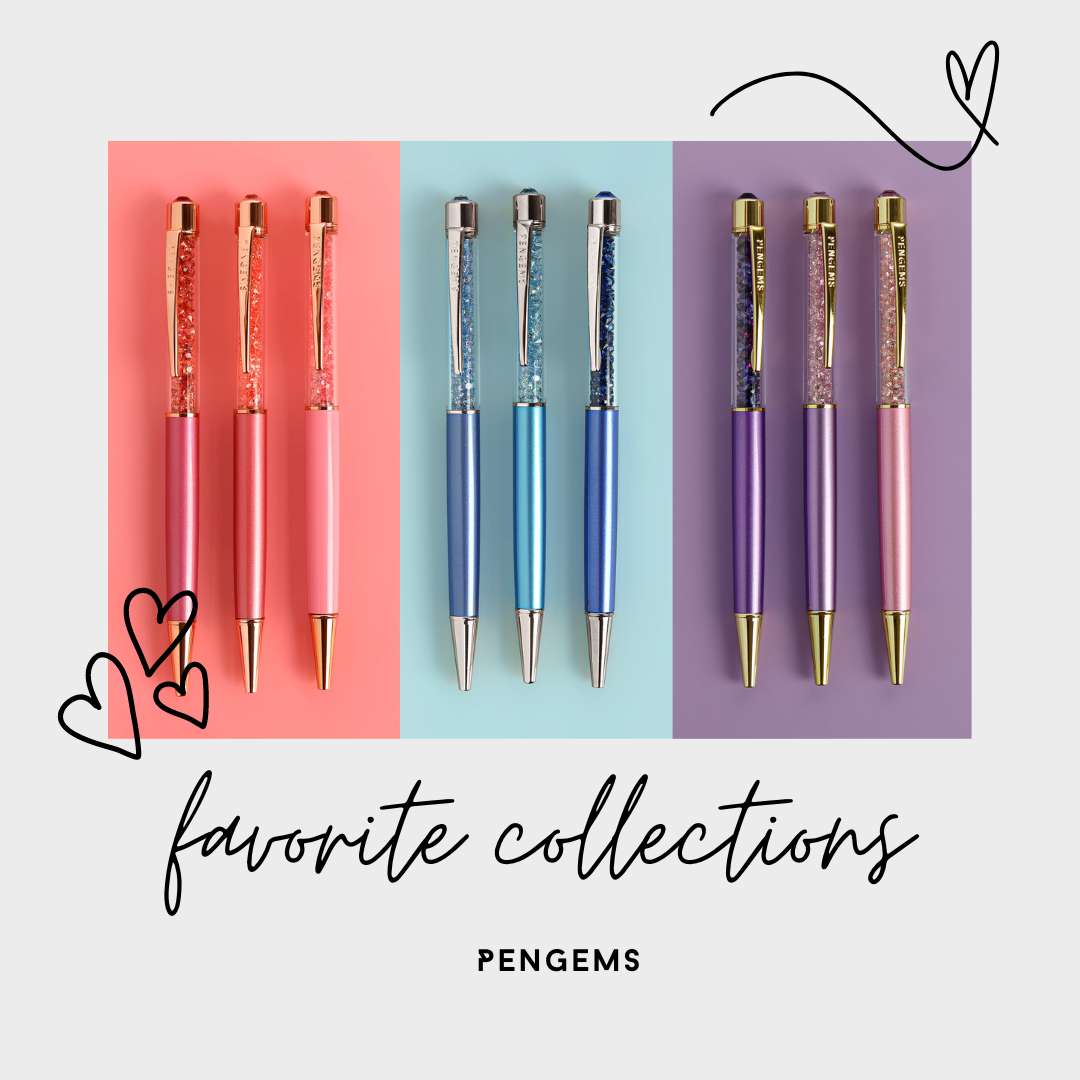 Get ready to color your world with PenGems' latest Favorite Collections! Choose from vibrant pinks, mesmerizing purples, and serene blues, each paired with your preferred hardware finish. Our top three pens - Heartbreaker, Babycakes, and Havana Cabana in pinks; Alaska, Fairytale, and Athena in blues; Antoinette, Darling, and Rendezvous in purples - are now bundled together to create your perfect pen paradise!