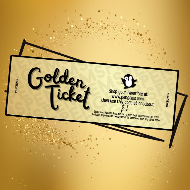 Will you discover a dazzling surprise in your next PenGems order! Our Golden Tickets bring a shower of sparkles to your shopping, offering values up to $50. A golden opportunity with every crystal pen purchase!