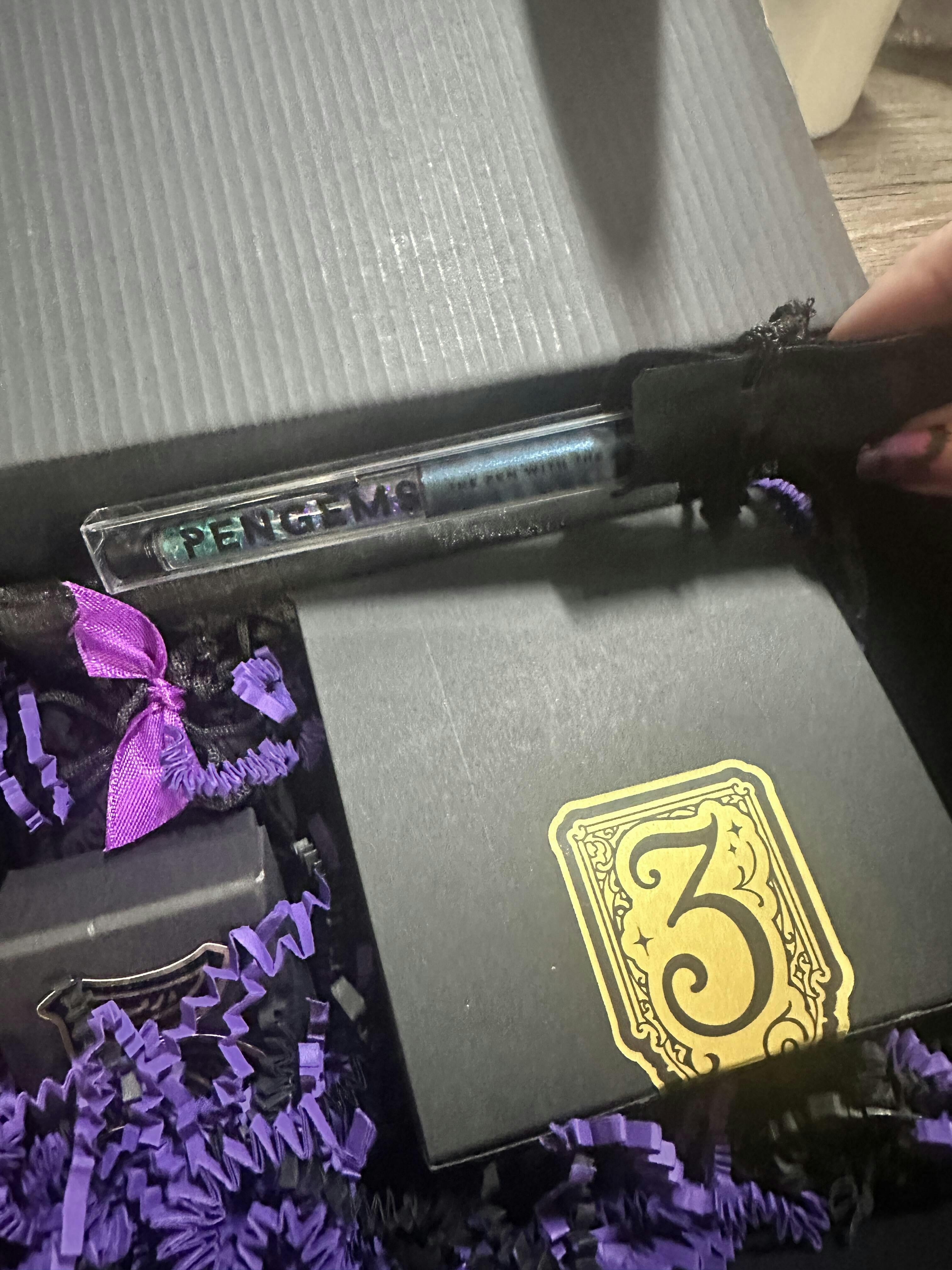 Such a gorgeous box set! The pen is beautiful! And all the goodies that came with the box were so amazing! The cauldron with a votive candle, to the little jars of crystals!